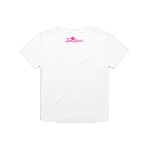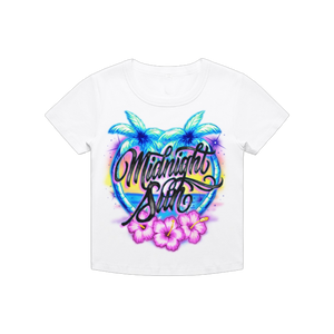 Women's baby rib crop tee featuring an airbrushed Midnight Sun design printed on the front and Zara Larsson on the back.